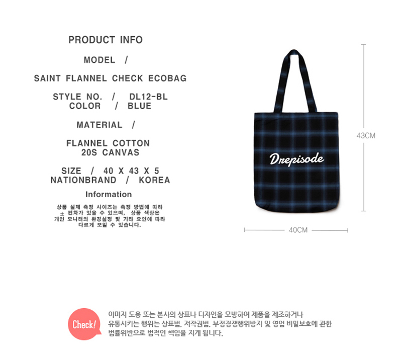 명품 및 하이엔드 스트릿 셔츠 플란넬 패브릭으로 제작된 상품으로 포인트 착용이 가능한 스타일리쉬 체크 에코백입니다.