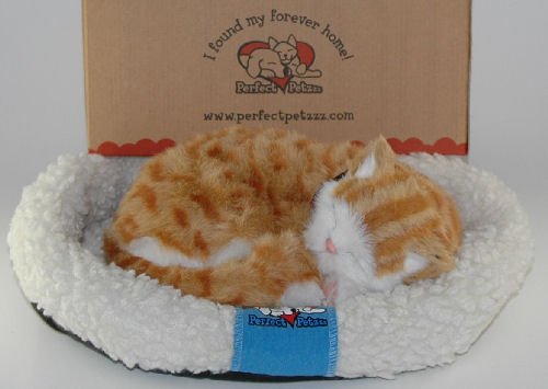 The NEW Huggable design! This pet's belly moves up and down as it breathes and it makes soft snoring noises. This pet is hand crafted with soft synthetic fur and comes with one 'D' Alkaline battery that is can run off. This pet comes with its own bed, collar, brush and adoption certificate.Feature