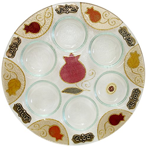 Majestic Giftware LASEP6 Round Passover Glass Seder Plate, 12-Inch
