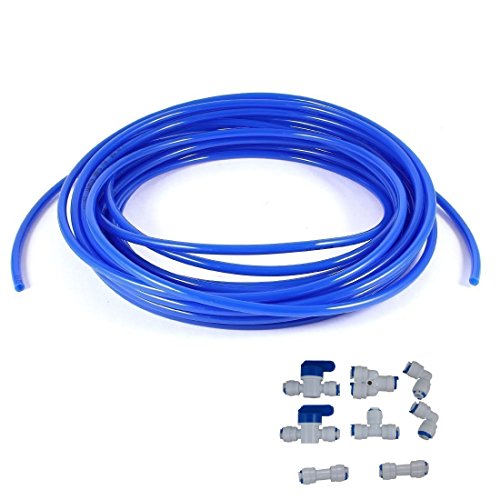Lemoy 1/4" Quick Connect Water Purifiers Tube Fittings for RO Water Reverse Osmosis System(Ball Valve+Y+L+I+T Type)+5 meters(15 feet) tubing hose pipe(blue) for RO Water Reverse Osmosis System (blue)