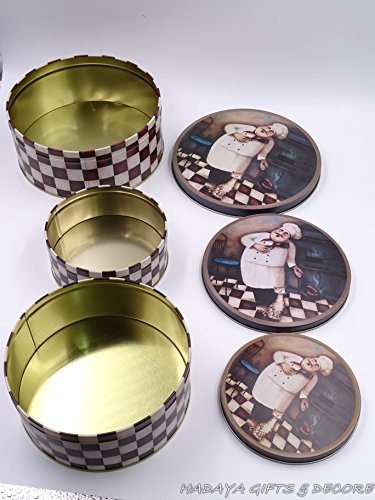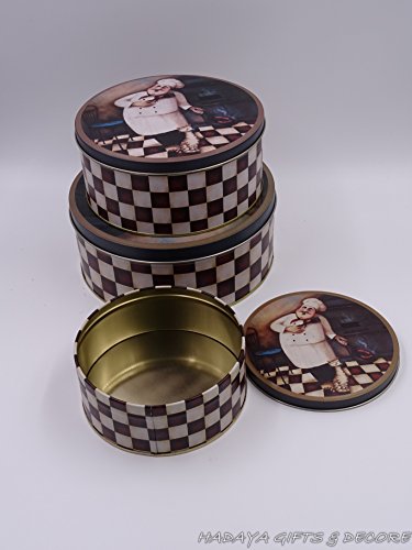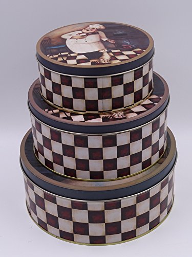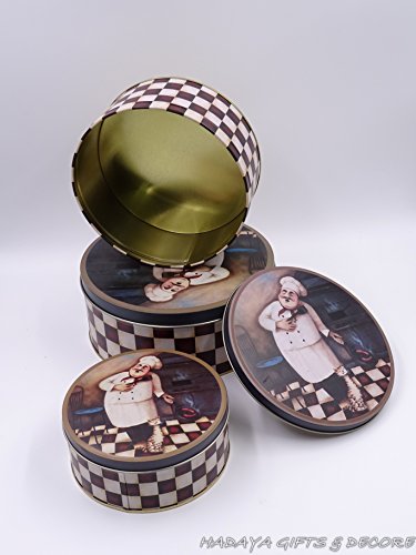 French chef kitchen themed Round storage tin, shabby chic,SET OF 3