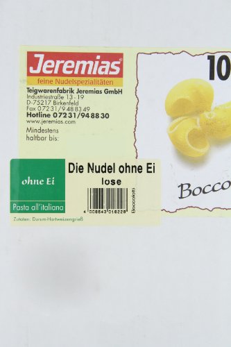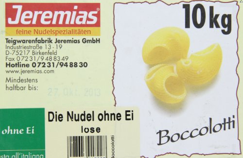 -. Binding : Lebensmittel & Getränke -. Brand : Jeremias -. EAN : 4008643018228 -. Feature : Genuss ohne Ei / die Alternative für alle, die bei ihrer Ernähung auf Ei verzichten möchten -. Label : Jeremias -. Manufacturer : Jeremias -. Model : 0122 -. MPN : 0122 -. NumberOfItems : 1 -. PartNumber : 0122 -. ProductGroup : Grocery -. ProductTypeName : GROCERY -. Publisher : Jeremias -. Studio : Jeremias -. Title : Jeremias Boccolotti, Pasta - Die Nudel ohne Ei, 1er Pack (1 x 10 kg Karton)