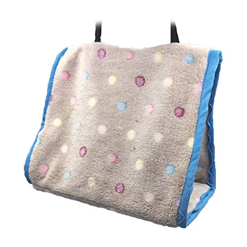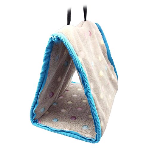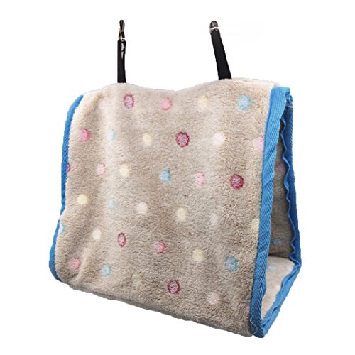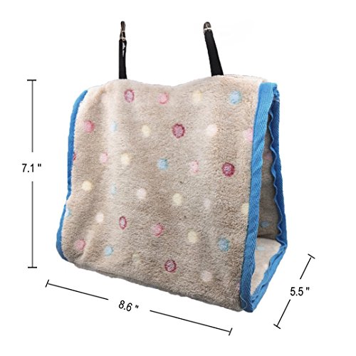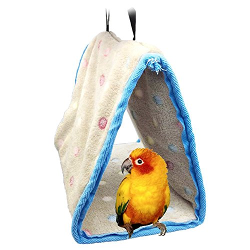 Features Easy and portable to hang with the bilateral hooks? Thick plush fabrics provide the good place for the birds This Nest gives your lovely parrots or birds a warm and comfortable hut to rest.? Your bird will snuggle this soft fleece tent with perch to keep warm in winter Soft comfort toys and sleeping tests can alleviate a birds stress and provide them with a sense of security