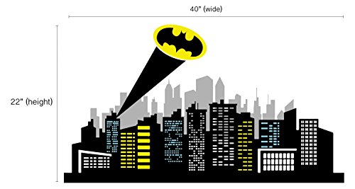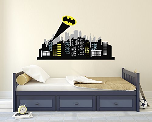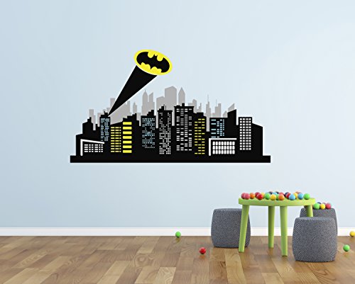 -. Binding : Baby Product -. Brand : Decalzone Inc -. Color : Matte Vinyl -. EAN : 0728821749730 -. Feature : GOTHAM CITY KIDS WALL DECAL - Size as picture: 40"W x 22"H / EASY TO APPLY - It is really easy to apply to the wall and it includes a paper with Step-by-Step instructions to make it easier to apply. / HIGH QUALITY - Premium matte finish vinyl specially designed for interior design. The material is the best quality in the market and it is not cheap material at all. / SAFE FOR KIDS - All our decals are completely Non-Toxic and do not contain chemicals that can affect your health. / MADE IN USA - Created and designed by DecalzoneTM. -. IsAdultProduct : 0 -. Label : Decalzone Inc -. Manufacturer : Decalzone Inc -. PackageQuantity : 1 -. ProductGroup : Baby Product -. ProductTypeName : BABY_PRODUCT -. Publisher : Decalzone Inc -. Studio : Decalzone Inc -. Title : Gotham City Wall Decal Baby Boy Kids Decor Nursery Gift Art Vinyl Sticker -. UPC : 728821749730
