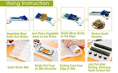 - [ Easy to Use, Never Take Much Time for Sushi ] - Would you like a healthy delicious sushi after your tired busy work? You don’t need to take much time, Just place vegetable leaves, meat food or Sushi rice on this vegetable meat roller and move it, Sushi comes out, enjoy it and have a good rest!