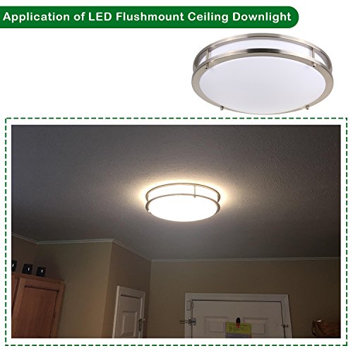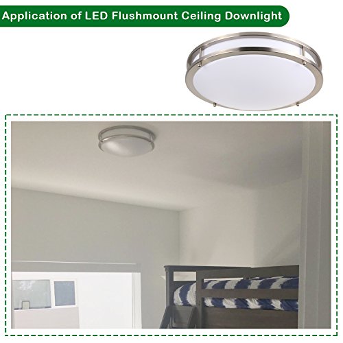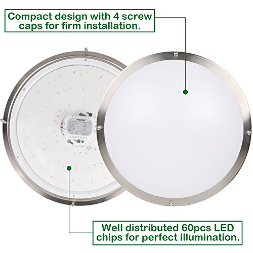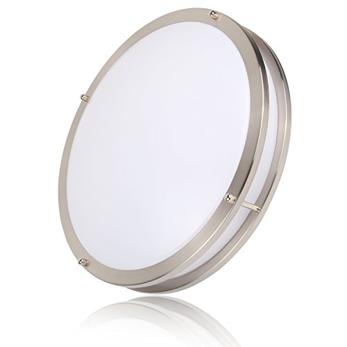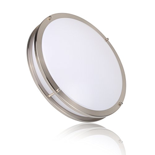 Hykolity 16 Inch Brushed Nickel LED Ceiling Low-Profile Flush mount LightBright White Light 4000K. Fastest and easiest fixture in the world to mount.