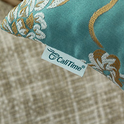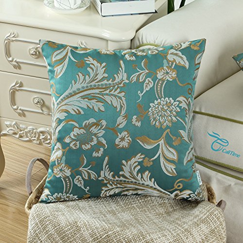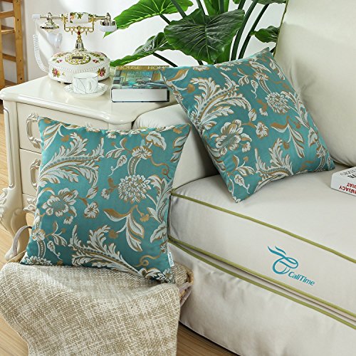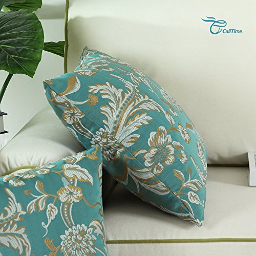 Pack of 2, CaliTime Cushion Covers Throw Pillow Cases Shells Both Sides, Vintage Floral, 18 X 18 Inches, Teal