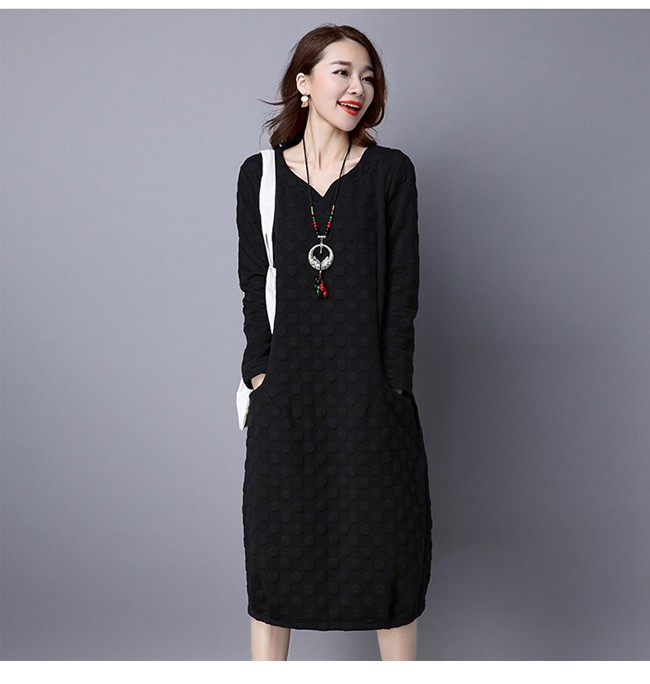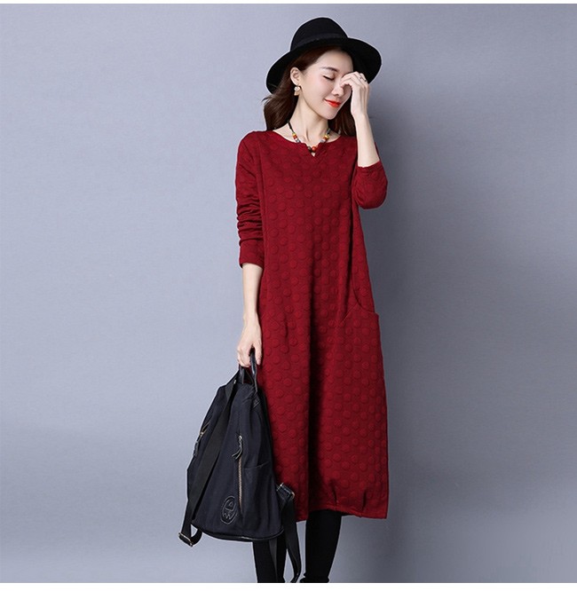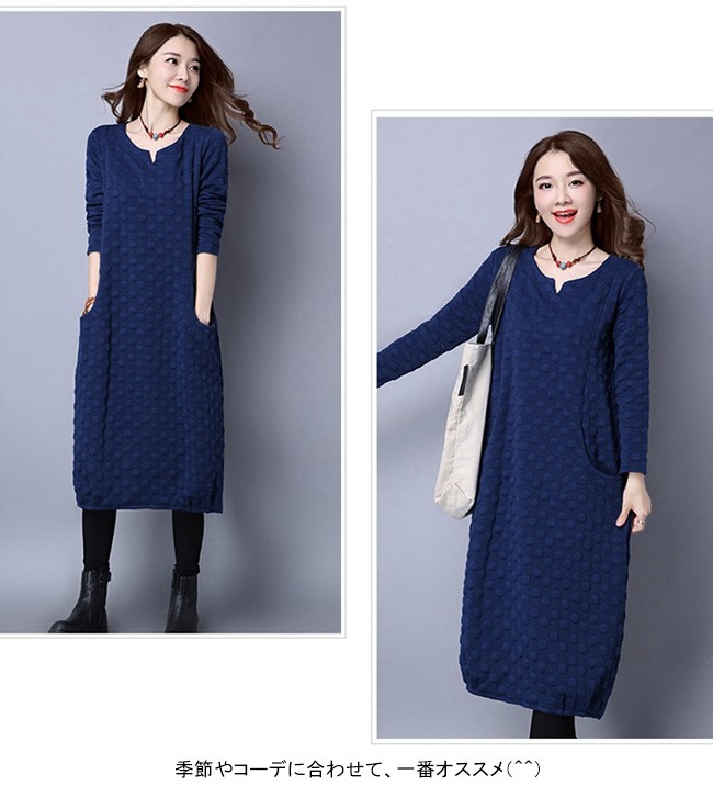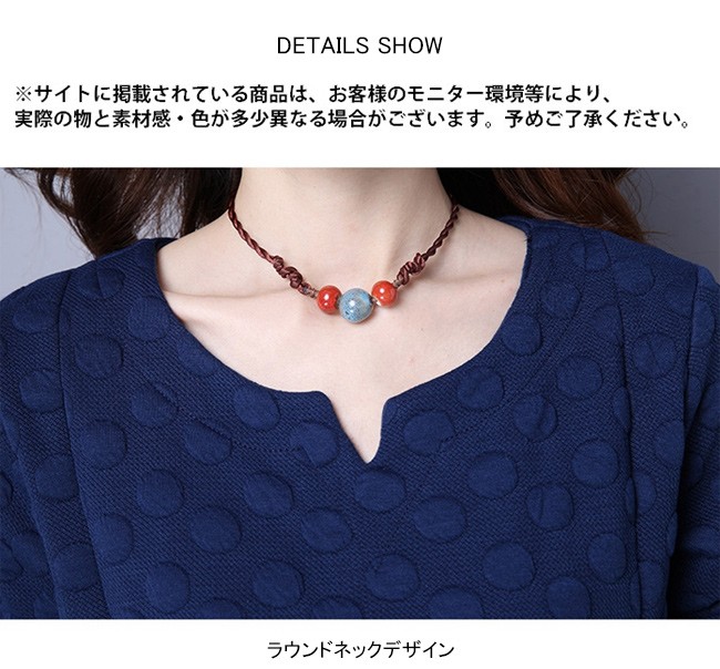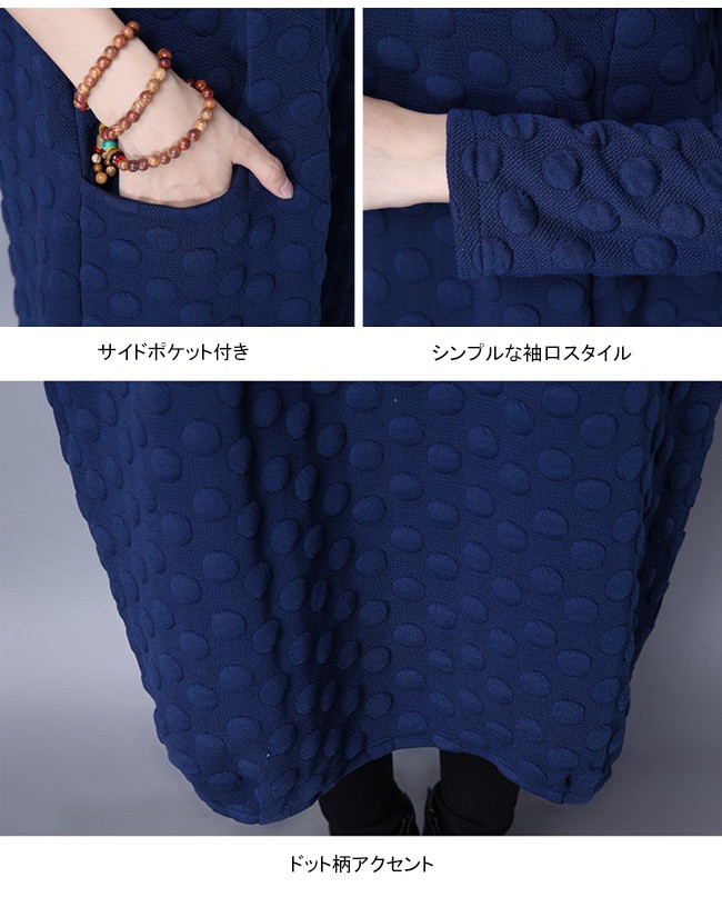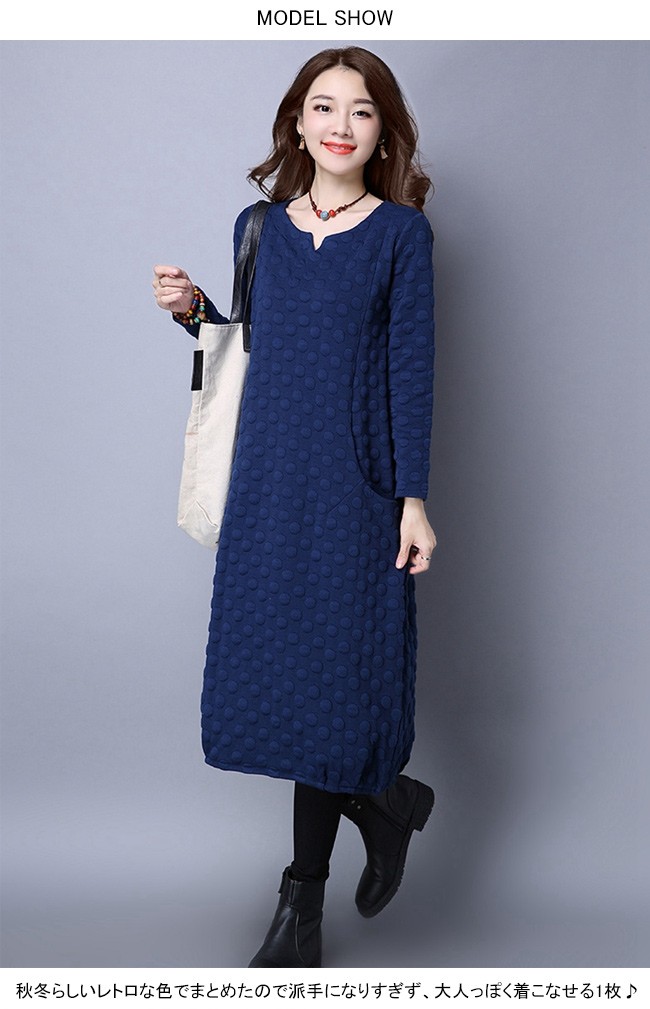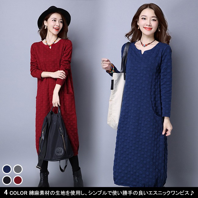 | 商品名 | エスニックワンピース 綿麻ワンピース ミモレワンピース レディース 民族風 ミモレ丈 インナーワンピース ドット柄 ゆったり 美シルエット 2017秋冬新作 |