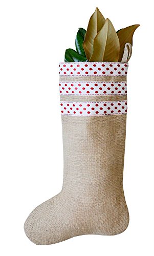 Creative Co-op Burlap Christmas Stocking with Red Polka Dot Trim