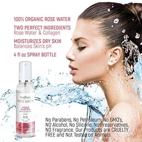100% ORGANIC ROSE WATER - Best Toning for Face, Neck, Decolletage, Eye Area, Moisturizes Dry Skin, Body and Hair, Balances Skin's pH, Works Perfect for Acne Prone Skin, Removes the Excess Sebum from Face and Neck, Suitable for All Skin Types.