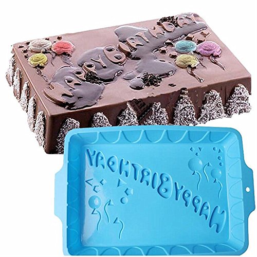 Xiaolanwelc@ 1pc Rectangular Shape Happy Birthday Letters Silicone Cake Mold 3D Bread Fondant Muffin Mold DIY Birthday Cake Tools