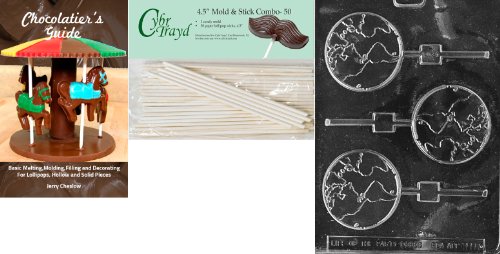 Cybrtrayd 'Globe Lolly' Miscellaneous Chocolate Candy Mold with 50 4.5-Inch Lollipop Sticks and Chocolatier's Guide