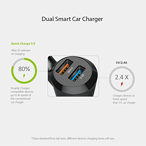 DETAILS MAKE DIFFERENCE. Attached rubber grip at the metal contact end ensure a stable and simple contact, QC3.0 USB port in orange while smart 2.4 USB port in blue, spare 10 mAh fuse, audio line. 2 year warranty.