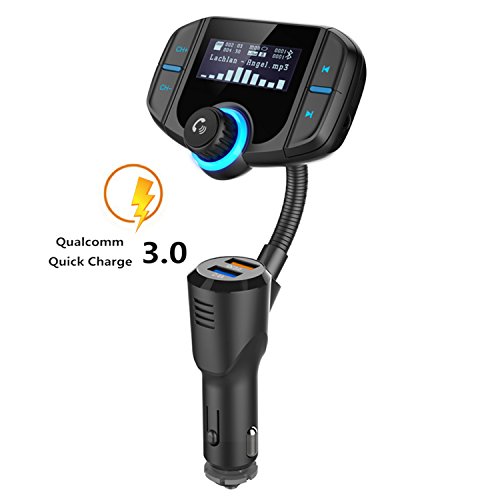 Bluetooth FM Transmitter for Vehicle, Wireless Radio Audio Adapter Kit with 1.7 inch LED Display and USB QC3.0 Car Charging Port, Support TF /Micro SD Card/MP3/MP4