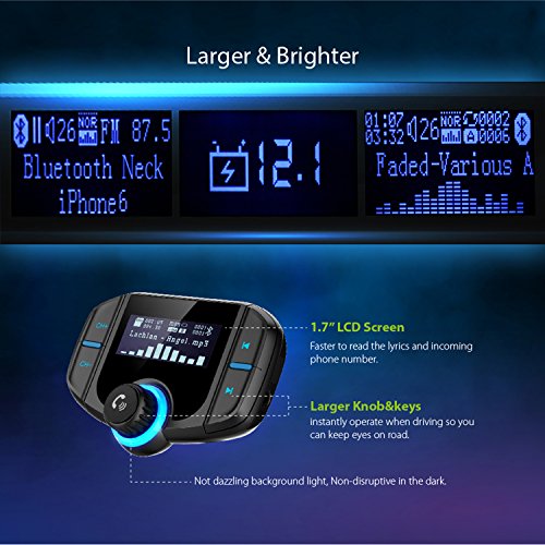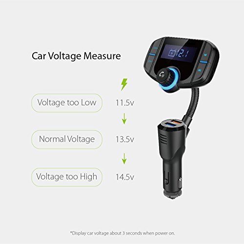 PREMIUM QULITY. Bluetooth 4.2, CVC6.0 noise canceling technology support clear phone call with microphone,1.7 inches led enough to display your song’s name, voltage of your car and an incoming phone call number. Quick Charge QC3.0 charge devices faster than conventional charging.