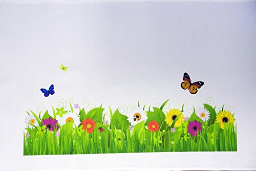 - This large cotton tea towel has a summer landscape printed on it. Fresh green grass bright flowers and butterflies.