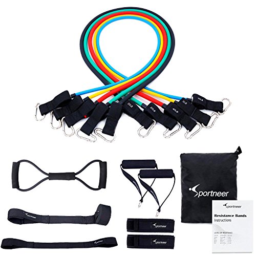 -. Title : Sportneer Resistance Band Set, Stackable Up To 105lbs Exercise Bands Door Anchor Ankle Strap Chest Expander