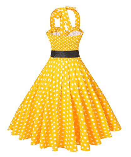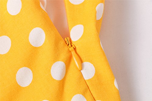 Empire waist with a ribbon sash that garnishes your empire waistline; Elastic back design makes it easy to fit most body shape, also with a strong metal side zipper.This super cute vintage dress is worthy of celebration!