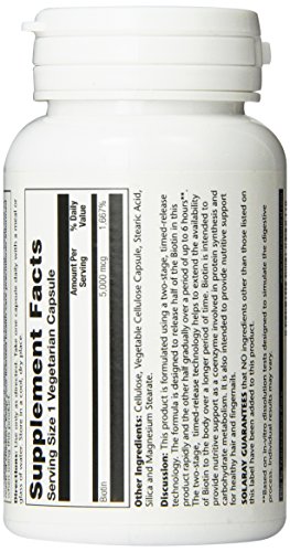Solaray Biotin Two Stage Time Released Supplement, 5000 mcg, 60 Count
