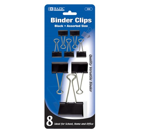 BAZIC Assorted Size Black Binder Clip (8/Pack)
