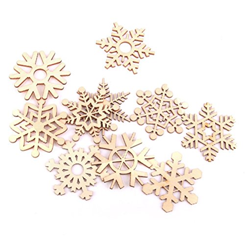 Tinksky Christmas Tree Ornaments Wooden Hanging Snowflake Xmas Decorations, Pack of 10