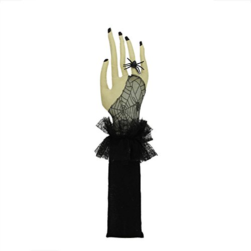-. Binding : Toy -. Brand : GALLERIE II -. Color : Black -. EAN : 0762152170993 -. Feature : Perfect for use under doorways, drawers, under the couch, or anywhere else your imagination takes you! / Long flexible fingers with black fingernails with a spider ring / Black tulle cuff accent with spider web printed fitted point sleeve / Spot clean only -. Label : Gallerie II -. Manufacturer : Gallerie II -. MPN : 31572639 -. PackageQuantity : 1 -. PartNumber : 31572639 -. ProductGroup : Lawn & Patio -. ProductTypeName : OUTDOOR_LIVING -. Publisher : Gallerie II -. Studio : Gallerie II -. Title : 18" Gathered Traditions Widow Witch Flexible Right Hand Halloween Decoration -. UPC : 762152170993