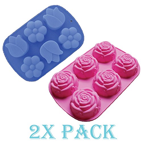 Combo 2 pack molds Large Rose and Large Tulip Silicone Cake, Ice Cube ,Chocolate Soap Tray Mold Party maker (Ships From USA)