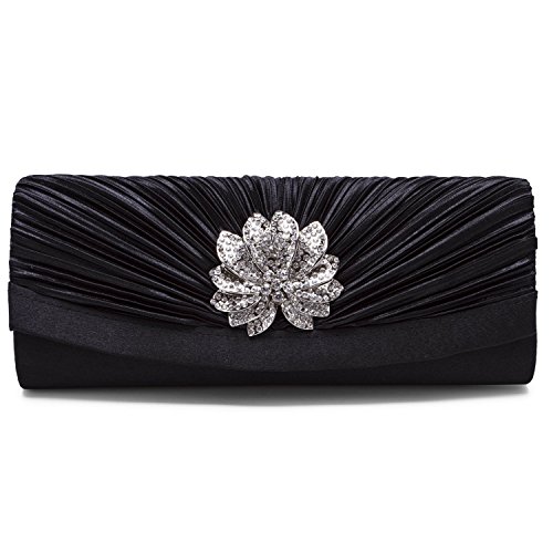 -. Title : CLOCOLOR Women Pleated Crystal-Studded Satin Handbag Evening Clutch