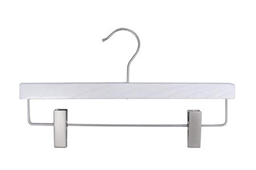 -. Feature : 14" pinch clip hanger for skirts, slacks, and other garment bottom pieces / Wood with low-gloss whitewash finish for strength and durability / Metal hook, clips, and clip bar with brushed chrome finish for resistance to corrosion / Adjustable pinch clips for holding garments of varying widths / 3/8" thick with imprintable 7/8" face