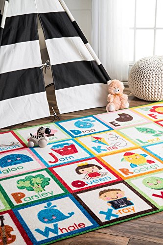nuLOOM Nursery Alphabet Block Cartoons Kids Area Rugs, 3' 3" x 5', Multicolor