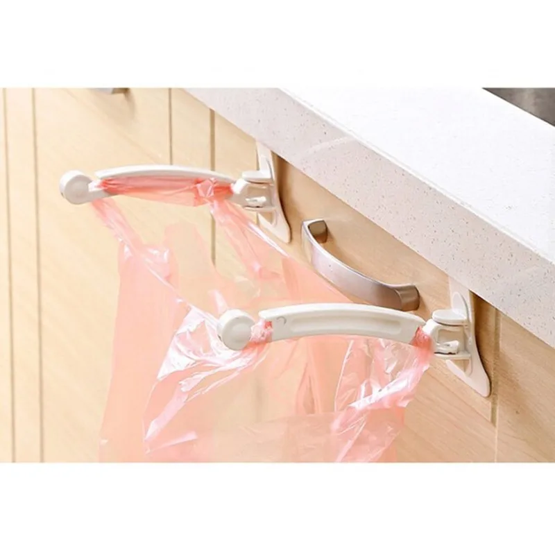 Hanging Kitchen Cupboard Cabinet Door Tailgate Stand Storage Garbage Bags Hooks Rack Home Kitchen Dining (Color: White)