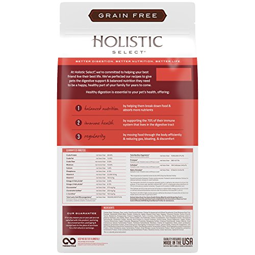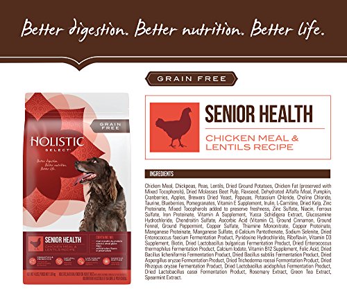Holistic Select senior formula is designed to meet the unique nutrition needs of your older dog. Grain-free, with the right amount of protein, fat, and fiber to support a slowing metabolism plus prebiotics & probiotics, live yogurt cultures, digestive enzymes, and natural fiber these recipes enhance digestion and total body health.