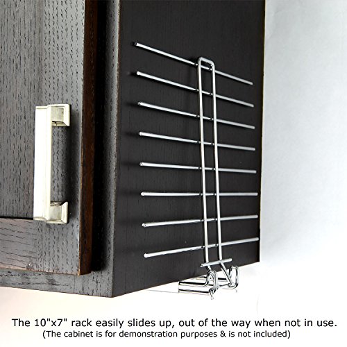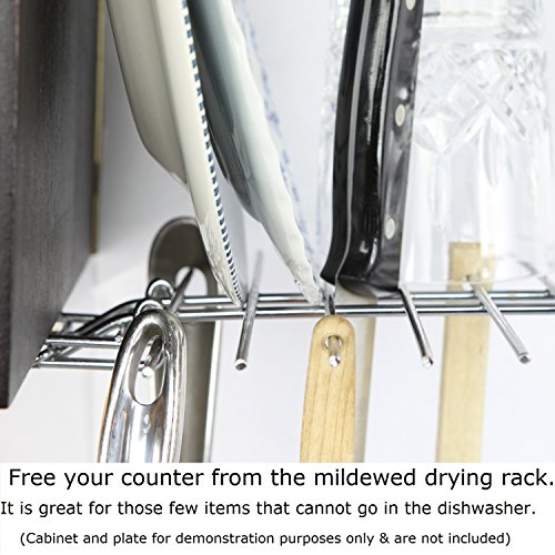 -. Feature : Space saving drying rack / Holds 10 lbs of distributed weight / Folds up out of the way when not in use / Attaches to the underside of a cabinet / Solves the problem of the cluttered counter