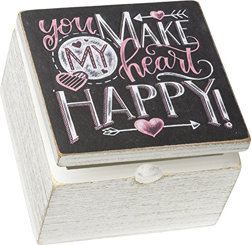 Primitives by Kathy 4 x 4 x 2.75 Hinged Wooden Box - You Make My Heart Happy