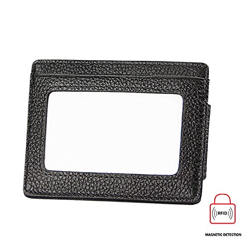 -. Feature : Leather material, polyester lining. / Dimension: 11*7.7*0.4CM / Comes with 3 card slots, 2 larger slots, an I.D. holder and a strong magnetic money clip. / Powerful Magnetism Can Hold Plenty of cashes. / RFID-SAFETY-P.R.IVACY-SECURITY: protect your valuable data, block RFID readers from scanning your credit cards, debit cards, banking information, smartcards, RFID driver's licenses and other RFID cards.