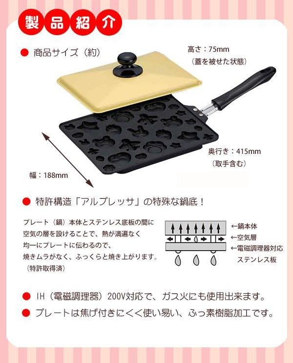 | サイズ | 外寸:約幅188×奥行415(取手含む)×高さ75mm(蓋を被せた状態)、プレートサイズ:188×237mm 個装サイズ:42×20×8cm |