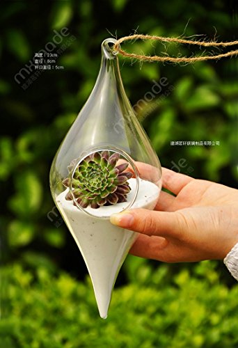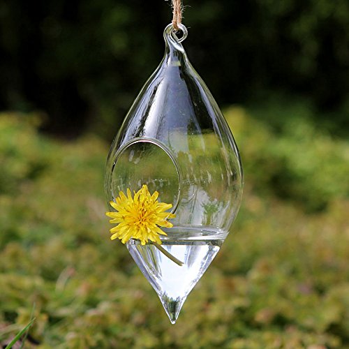 Pack of 2 Hanging Terrarium Glass Vase Flower Air Plant Pot Container Home Office Decoration Olive Shape