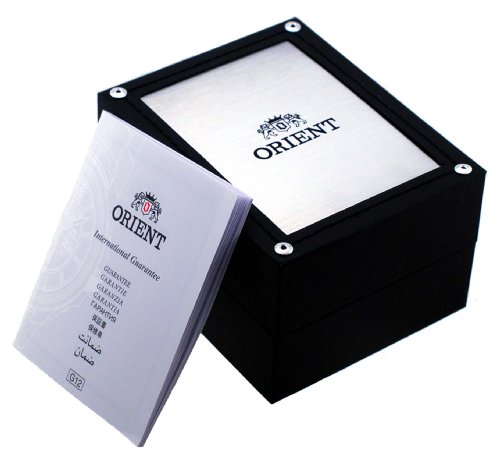 The new Orient Symphony dress watch features an Orient made 21-jewel automatic movement, a black dial with silver applied hour markers, matching silver hands, a solid screw-in case back, date window at 3:00, a mineral crystal, and a black leather strap. Great watch for wearing to the office or out for dinner. It is nice and thin and wears well on all wrist sizes. Comes with a 41mm x 12mm stainless steel case and features up to a 40 hour power reserve. Features Movement: Orient 21-jewel Automatic (self winding) Case: Stainless steel, 41mm x 12mm thick Back: Solid screw-in back Crystal: Hardened Mineral Band: Black leather strap, buckle closure, 20mm. Water Resistant: 50 meters Warranty: 1 YearFeature