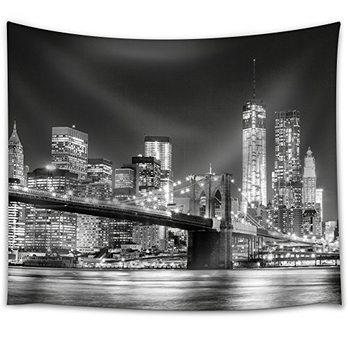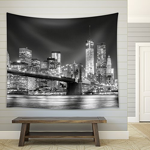 Wall26® - Grayscale Photograph of the Brooklyn Bridge Looking Over New York City at Night Time - Fabric Tapestry, Home Decor - 51x60 inches