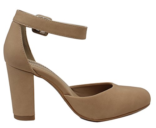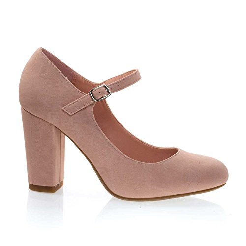 City Classified Comfort Women's Nola Faux Nubuck Leather Mary Jane Chunky High Heel