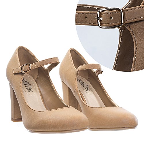 Product Description Mary Jane chunky heels featuring round toe, faux nubuck leather, and chunkly heels measures approx. 3 1/2". Made by "City Classified Comfort" which adds extra padding insole for extra comfort, 0