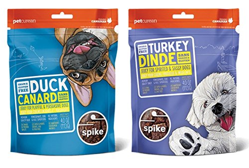 -. Title : Petcurean Grain & Gluten Free Premium Jerky Dog Treats 2 Flavor Variety Bundle: (1) Duck, and (1) Turkey - 4 Ounces