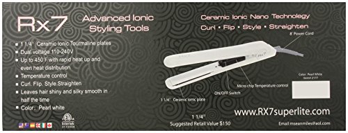 RX7 Superlite Advanced Ionic 1 1/4 Inch Ceramic Flat Iron, Pearl White, 8 Foot Cord