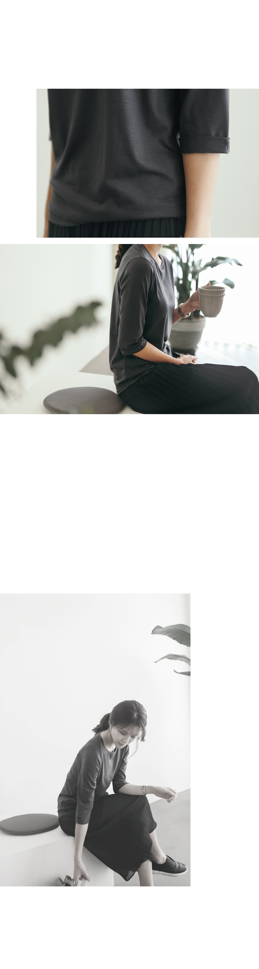 - 니트소재나 무거운옷의 경우 짜임에 따라 옷걸이에 걸어 보관을 하거나 착용에 따라 길이감이 늘어날 수 있습니다.