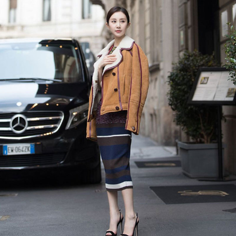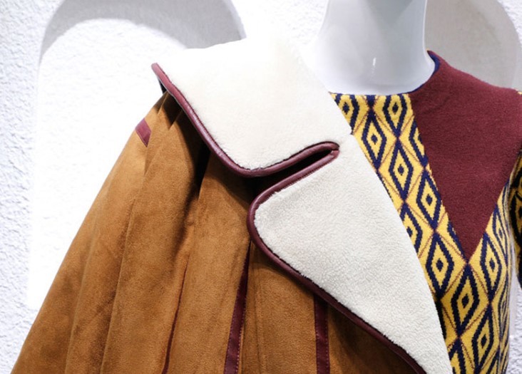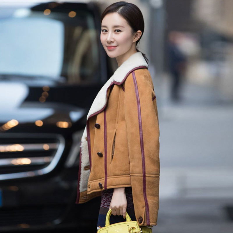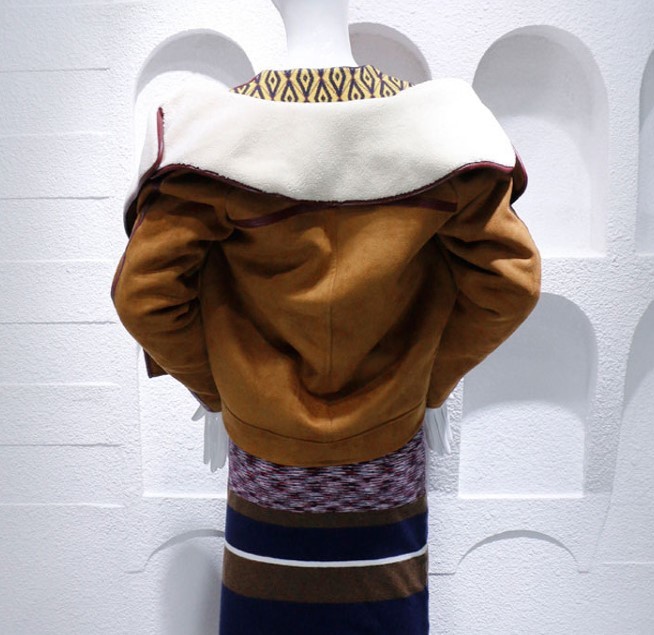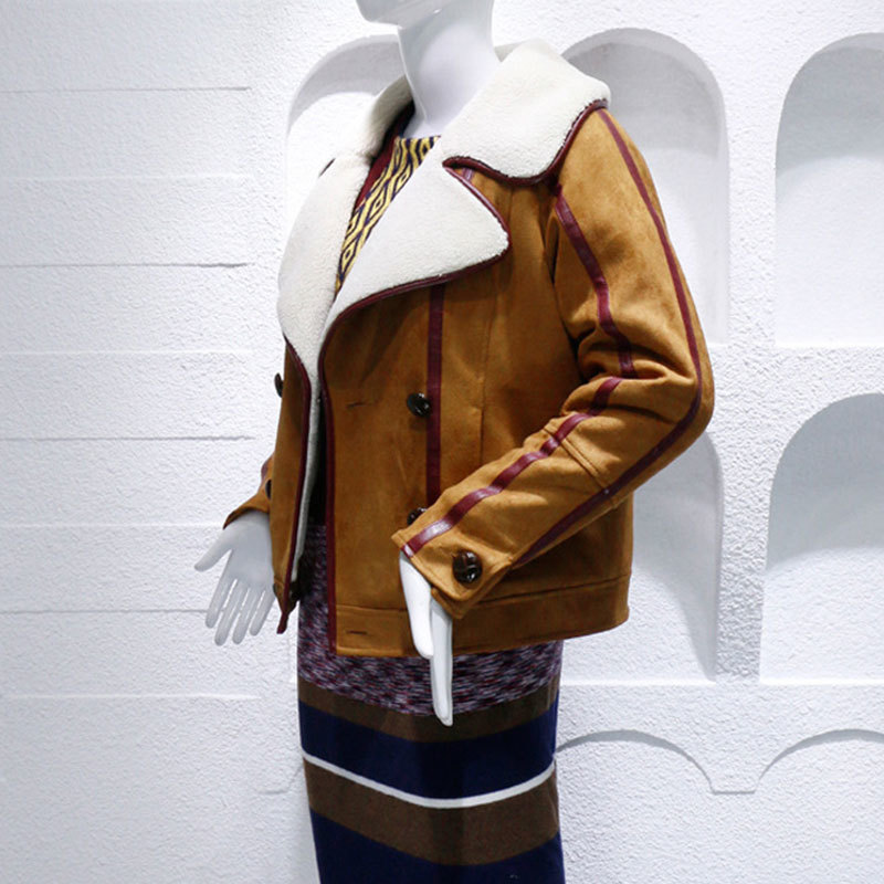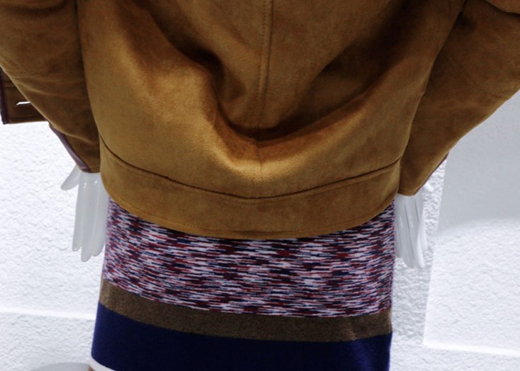 大きめなテーラードカラーで小顔に見せるミニ丈ジャケット。