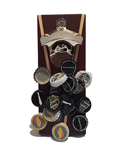 -. Title : Wall Mounted Bottle Opener with Finished Wood and Magnetic Cap Catcher