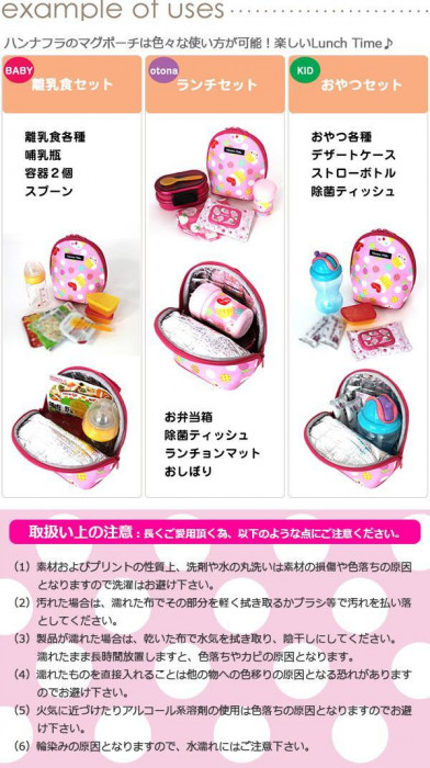 哺乳瓶をしっかり保温保冷できます。撥水加工済みですので、お手入れも簡単!!お菓子や小さめプラスチック容器も一緒に入ります。持ち手にはバックルが付いているので、ベビーカーの持ち手にひっかけることができます。 |