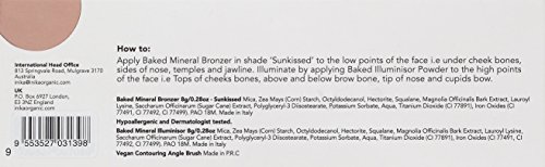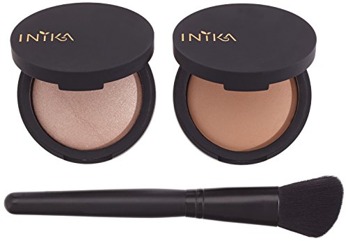 INIKA Naturally Baked Contour Set is the ultimate all-natural, mineral contouring set. This set contains: Baked Mineral Bronzer (Sunkissed) (8g) , Baked Mineral Illuminisor (8g), baked on the finest terracotta tile in Tuscany, Italy, and the must-have vegan contouring brush. Inika Baked Mineral Bronzer contains no binders, additives or talc, it is lightweight, longwearing and great for sensitive skin. Developed to give the color payoff of a loose bronzing powder and the convenience of a baked powder. Inika Baked Mineral Illuminisor gives the skin a beautiful natural glow and sheer luminosity. It can be used as a highlighter on the cheeks and brow bone, or can be dusted over the entire face and décolletage to enhance complexion and create an all-over healthy glow. The set includes a Vegan Contouring Brush to accurately define your features and blend lines as it features angled bristles perfect for applying baked mineral makeup to the hollows of the cheek and jawline for a natural contour. Sculpt and illuminate your naturally beautiful features with this duo of ultra blendable and buildable bronzing and highlighting shades. Hypoallergenic and Dermatologist tested. About Inika: winner of multiple beauty awards, Inika is the world's healthiest makeup brand as over 50% of its products are certified organic and all products are Certified Vegan, Cruelty Free and Halal. We only use the finest botanicals and minerals, chosen for quality, tested for purity and checked for safety. Our products are cruelty-free, toxin-free, vegan and environmentally friendly. Our philosophy is to create beautiful, healthy, high performing makeup that gives you a flawless look. They feel luxurious to use and leave you with radiant, glowing results. Your skin will love them and so will you.Feature