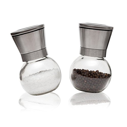 - GRAB YOURS TODAY: Definitely a great addition to any kitchenware with its stainless steel finish and clear spherical glass body that will surely compliment any types of kitchen theme. Impress and entertain your family and friends with this Optimum Salt and Pepper Mill Spherical Set. Plus, it makes a wonderful gift idea for any occasion!