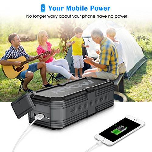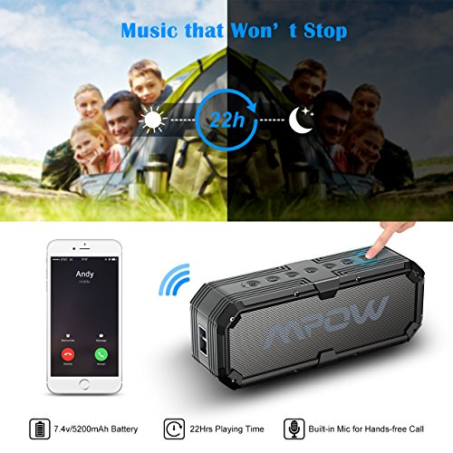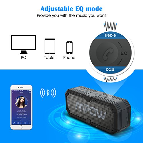 -. Binding : Electronics -. Brand : Mpow -. Feature : HD ACOUSTIC SOUND: Implemented with two 8W total acoustic drivers, the Mpow Bluetooth speaker produces a wide audio spectrum. Experience your music in high definition audio and clarity at any listening level. / EXTRA-LARGE CAPACITY POWER BANK: Built-in 5200mAh rechargeable battery allows 22 hours playing time and charge your cell phones when in urgent need in outdoor. Enjoy a whole day outgoing on a single charge. / ULTRA PORTABLE: Well-protected in red iron shell and IPX5 rating material, this speaker is shockproof and waterproof, perfect for outdoor activities and on-the-go listening. Comes with a pouch and hand strap, it is very convenient to carry this speaker everywhere. / ADJUSTABLE EQ FEATURES: Adjustable bass mode for your iPhone, iPad, iPod, Mac, all smartphones, tablet PCs etc., to provide you with the music style you want. / HANDS-FREE CALLING: Built-in microphone for handsfree phones via smartphones and Bluetooth handsfree speakers on iPhone. So you can answer the mini speaker's phone anywhere in the car, bathroom, home or office anytime, anywhere and connect it to your smartphone. -. Label : Mpow -. Manufacturer : Mpow -. PackageQuantity : 1 -. ProductGroup : Speakers -. ProductTypeName : PORTABLE_AUDIO -. Publisher : Mpow -. Studio : Mpow -. Title : Mpow Bass Bluetooth Speaker with Adjustable EQ Function, 22 Hours Playtime, Portable Waterproof Wrestling Wireless Speaker with 5200mah Power Bank